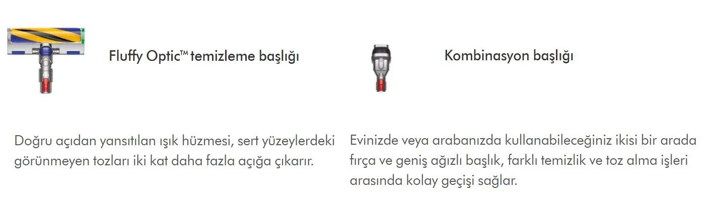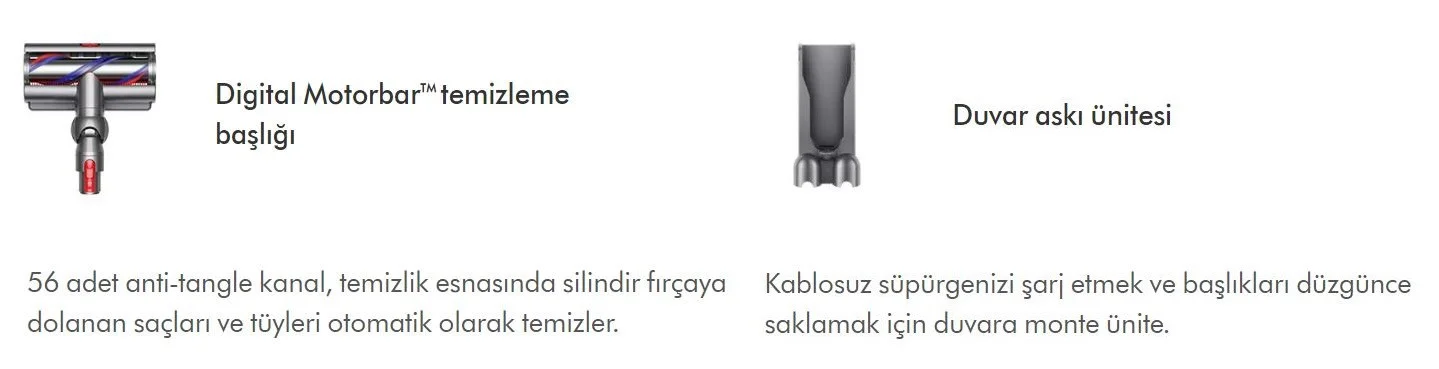Tüm zemin tiplerini, ulaşılması zor yerleri, yatakları, kanepeleri ve merdivenleri temizlemek için çok yönlü Dyson kablosuz teknolojisi.