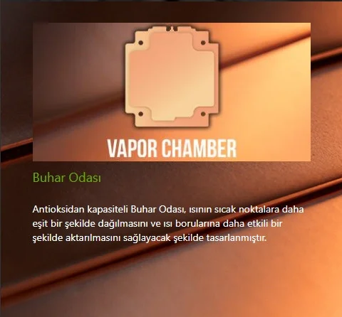 Antioksidan kapasiteli Buhar Odası, ısının sıcak noktalara daha eşit bir şekilde dağılmasını ve ısı borularına daha etkili bir şekilde aktarılmasını sağlayacak şekilde tasarlanmıştır.