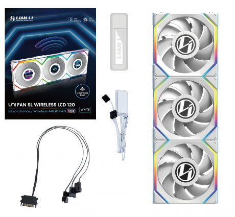 Lian Li UNI FAN SL WIRELESS LCD 3x120mm Beyaz Kasa Fanı (G99.12SLLCD1W3W.00)
