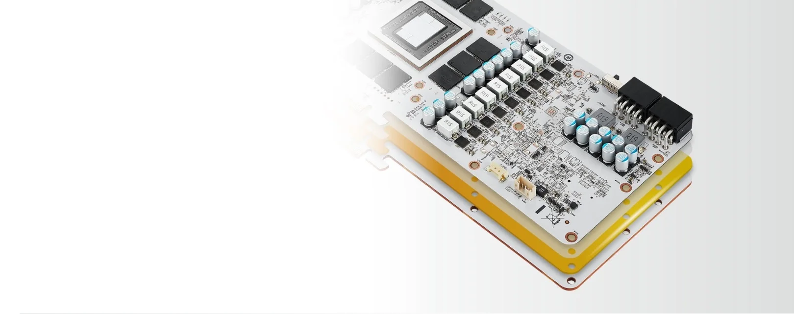 Hellhound RX 7800 XT'de 2 oz güç katmanı da dahil olmak üzere birinci sınıf 14 katmanlı yüksek TG PCB Kartı kullanılmıştır; Bu şekilde tasarlanmış bir PCB, iletim sırasında sinyal kaybını azaltır: özellikle yüksek güç akımları için, ilave stabilite ile birlikte önemlidir.