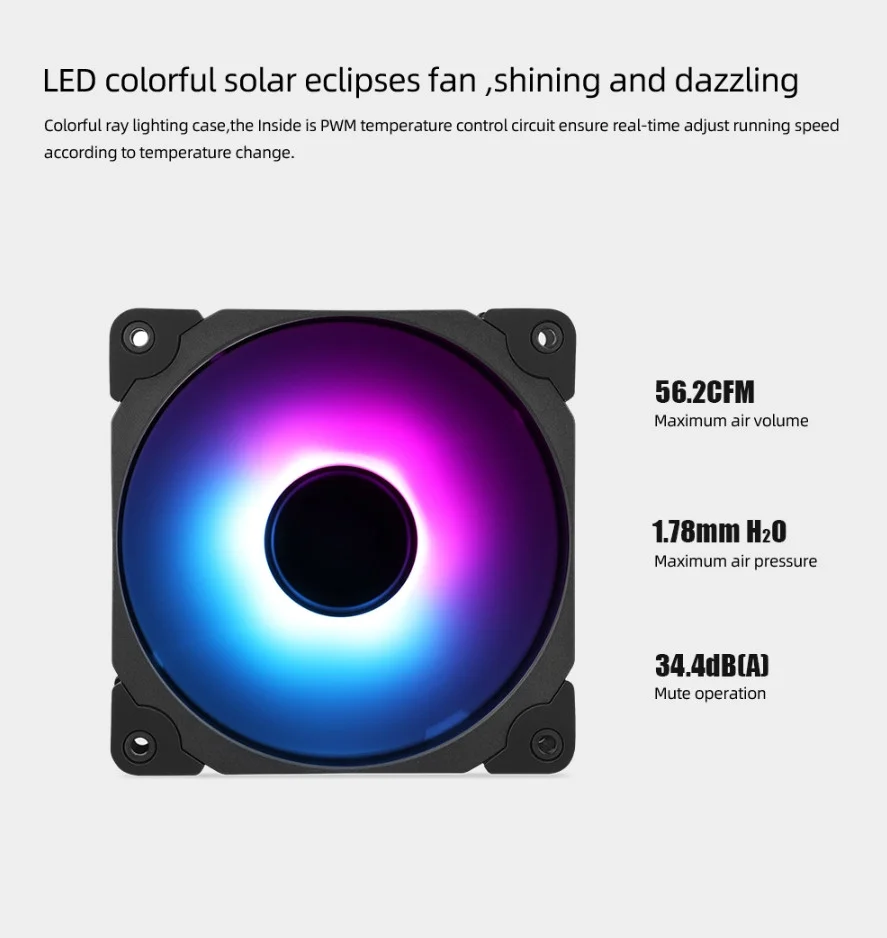 Renkli ışınlı şimşek kasası, iç kısımdaki PWM sıcaklık kontrol devresi, sıcaklık değişimine göre çalışma hızını gerçek zamanlı olarak ayarlamayı sağlar.