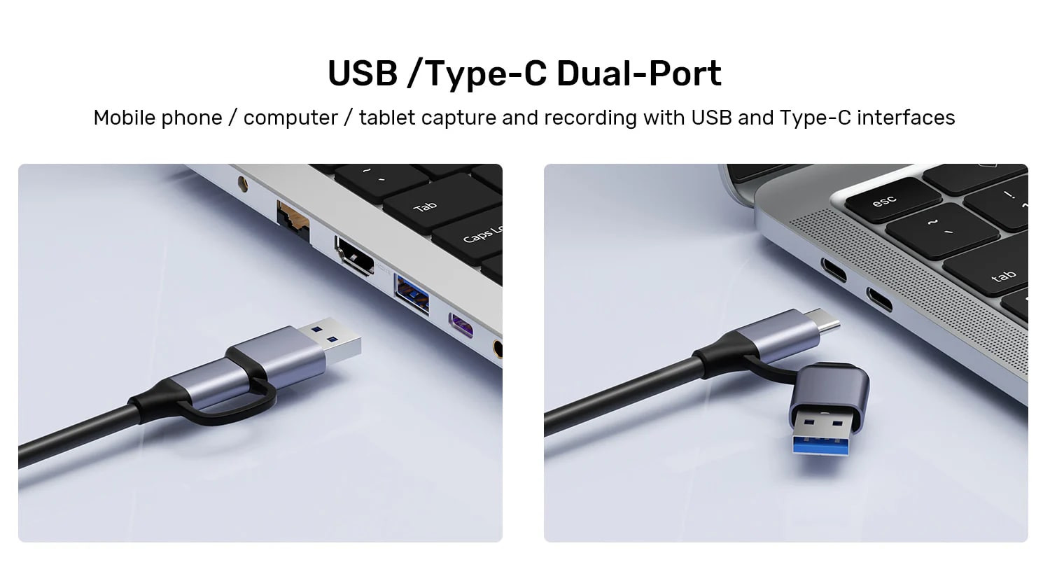 USB ve Type-C arayüzleri ile Cep Telefonu / Bilgisayar / Tablet yakalama ve kayıt yapabilirsiniz.